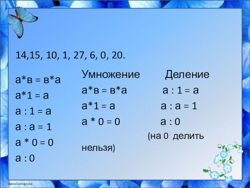 а*в = в*а а : 1 = а