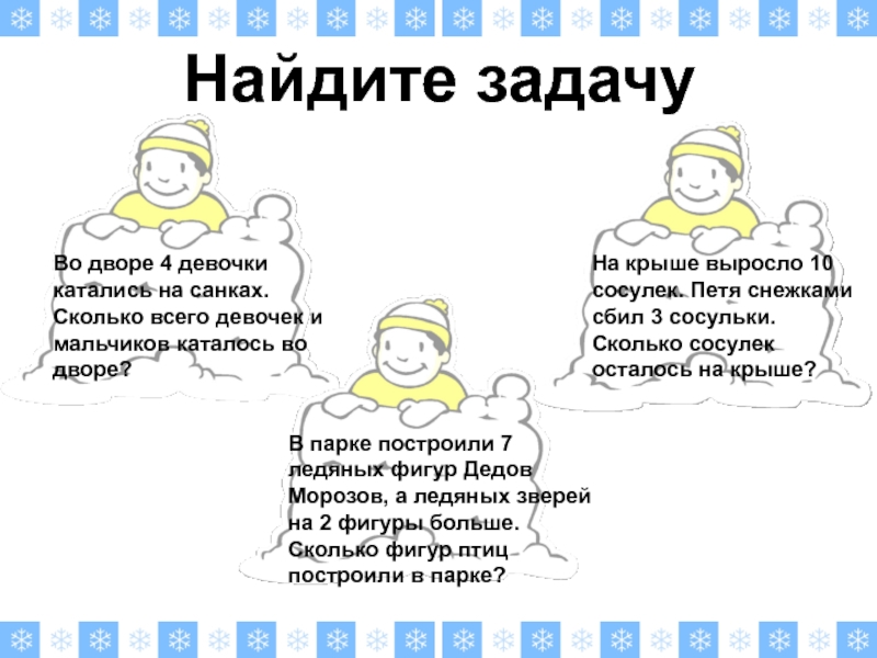 Во дворе 4 девочки катались на санках. Сколько всего девочек и мальчиков каталось во дворе?