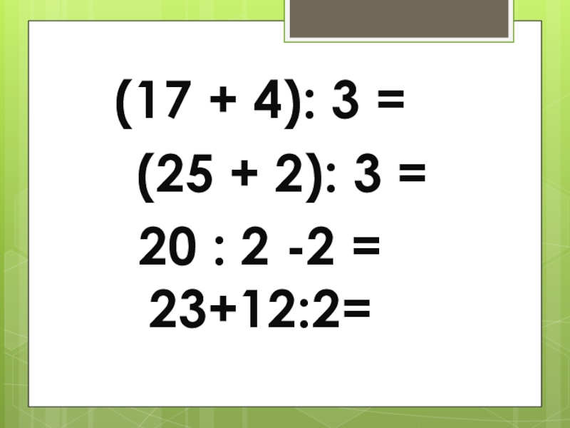 Слайд 20(17 + 4): 3 =