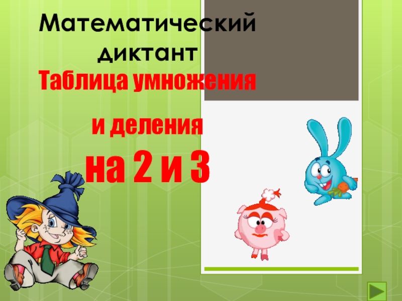 Математический диктантТаблица умножения и деления на 2 и 3