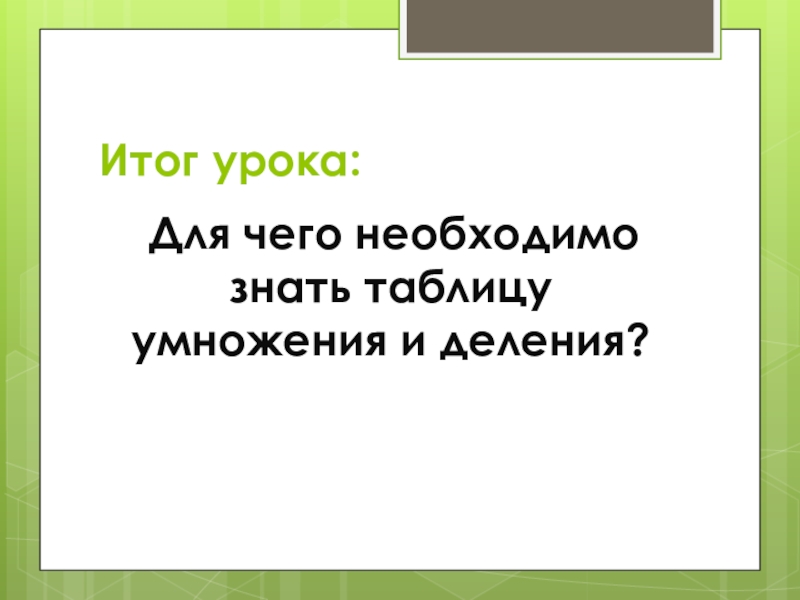 Итог урока: Для чего необходимо знать таблицу умножения и деления?