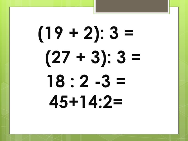 Слайд 19(19 + 2): 3 =