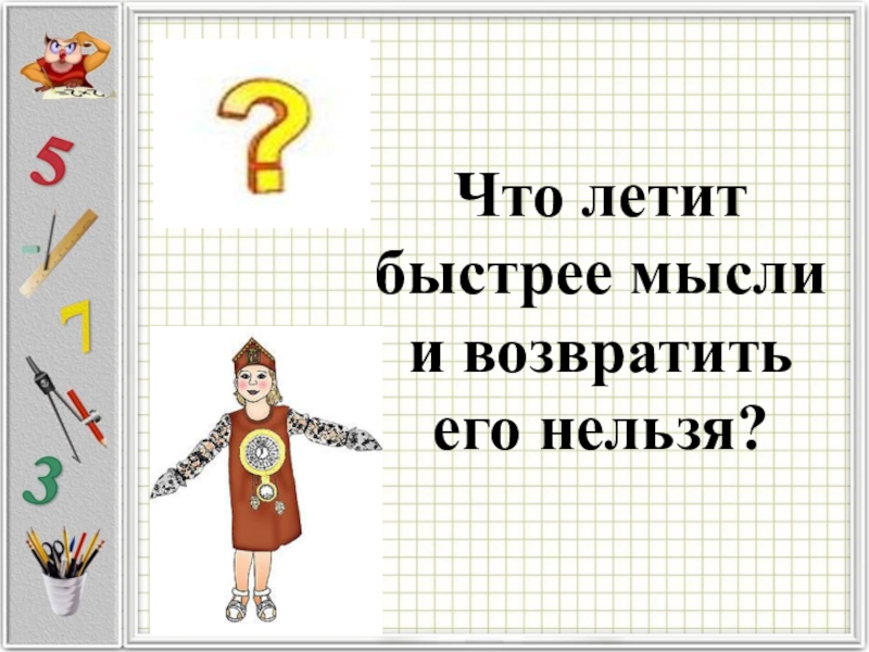Слайд 7Что летит быстрее мысли и возвратить его нельзя?