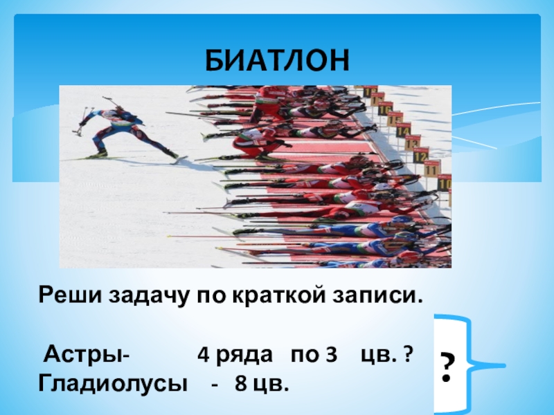 БИАТЛОНРеши задачу по краткой записи.    Астры-      4 ряда  по