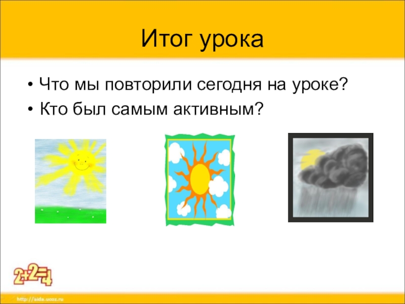 Итог урока Что мы повторили сегодня на уроке?Кто был самым активным?