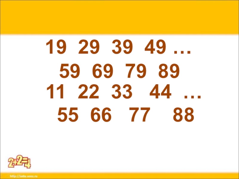 19 29 39 49 …59 69 79 89 11 22 33  44 …55 66  77