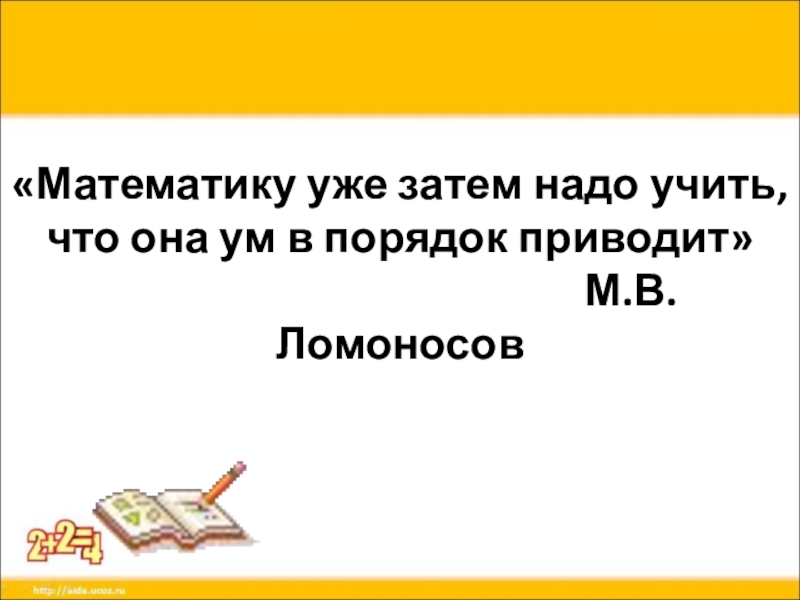 Слайд 2«Математику уже затем надо учить, что она ум в порядок приводит»