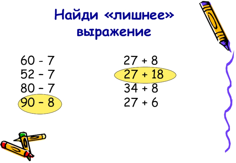 Найди «лишнее» выражение60 - 7 27 + 852 – 7 27 + 1880 – 7