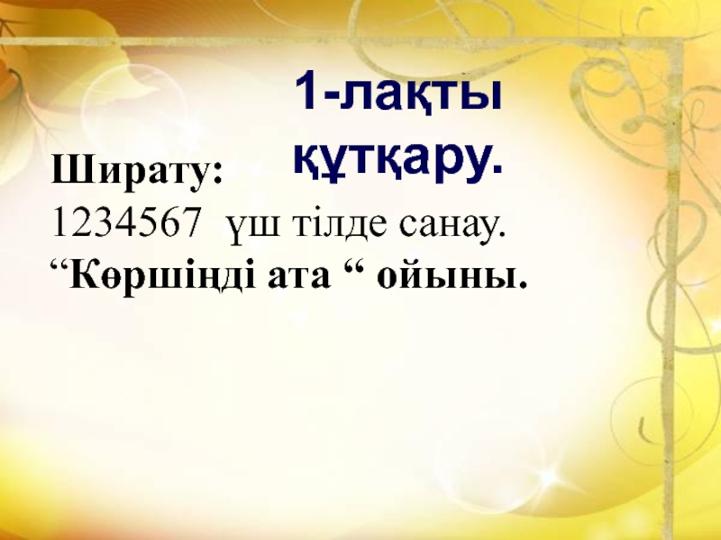1-лақты құтқару.Ширату: 1234567 үш тілде санау.“Көршіңді ата “ ойыны.