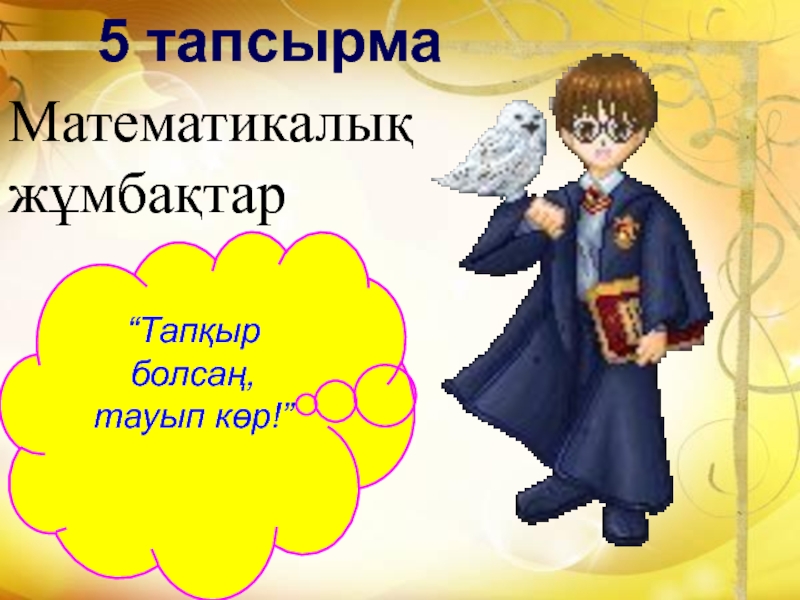 5 тапсырма“Тапқыр болсаң, тауып көр!”Математикалық жұмбақтар