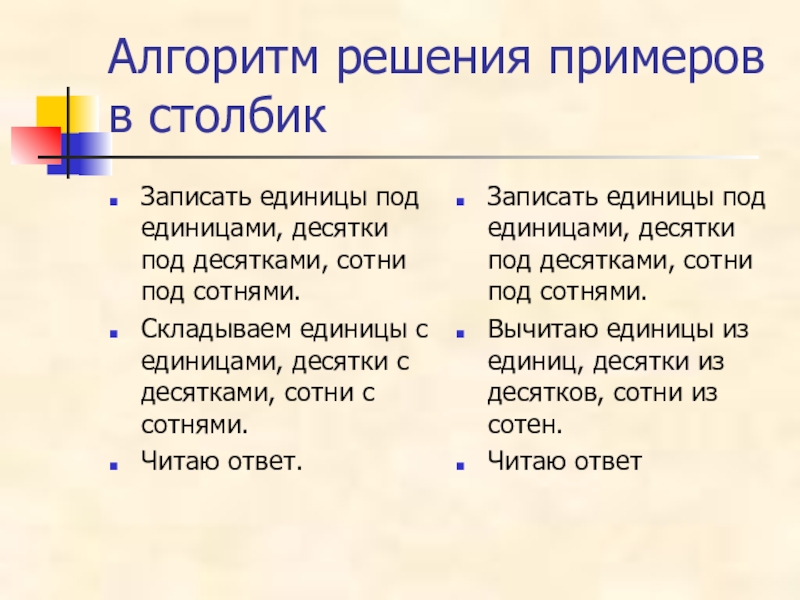 Записать единицы под единицами, десятки под десятками, сотни под сотнями.