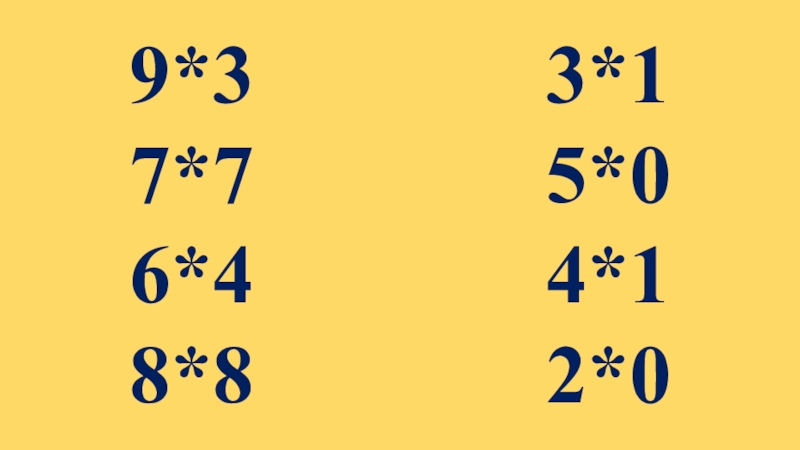 9*3, 7*7, 3*1, 5*0, 6*4, 8*8, 4*1,