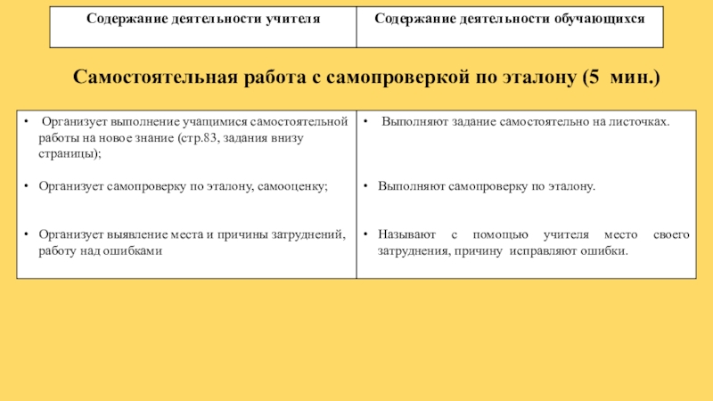 Самостоятельная работа с самопроверкой по эталону (5 мин.)