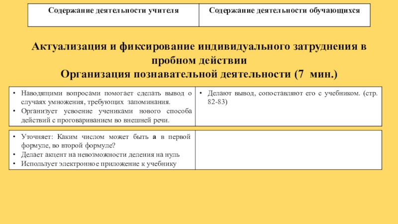 Актуализация и фиксирование индивидуального затруднения в пробном действии