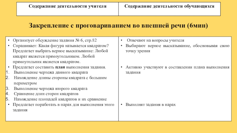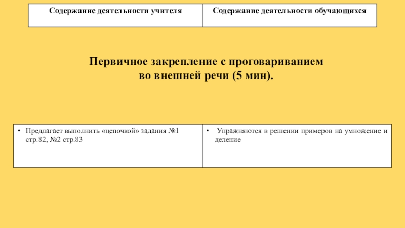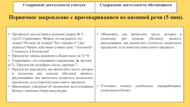 Первичное закрепление с проговариванием во внешней речи (5 мин).