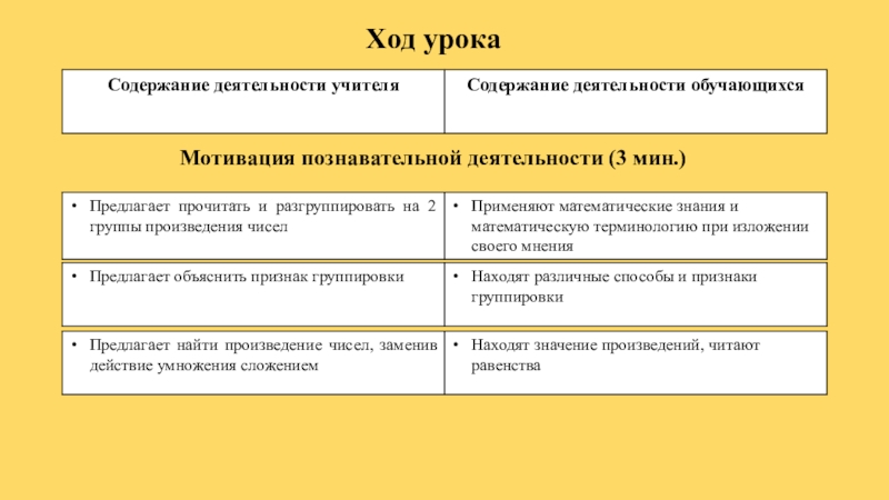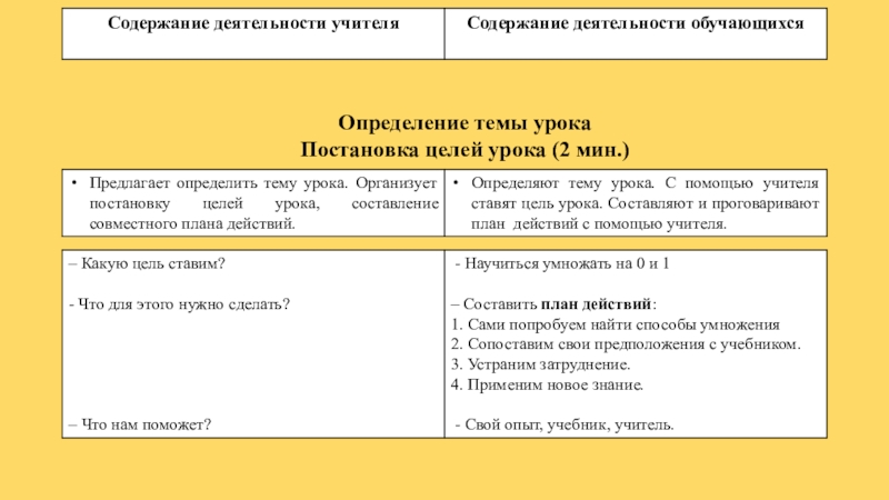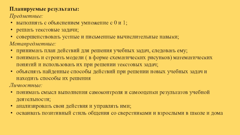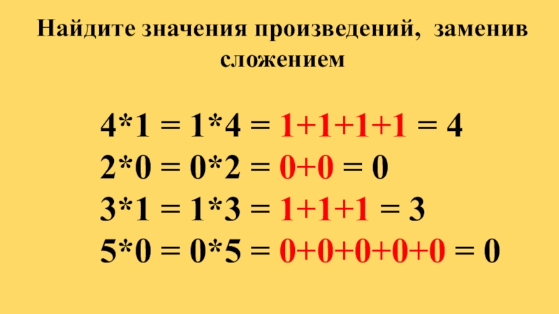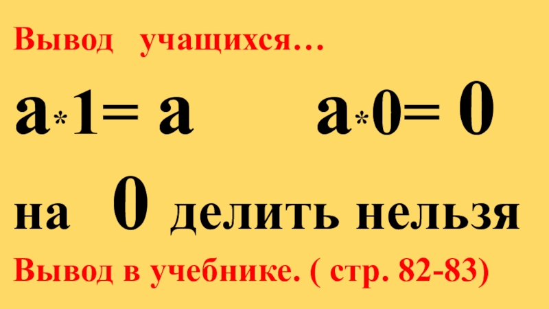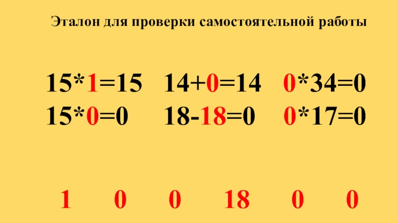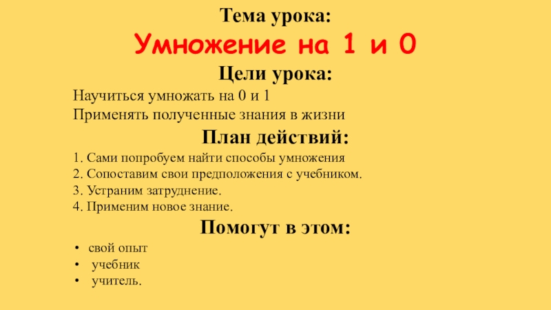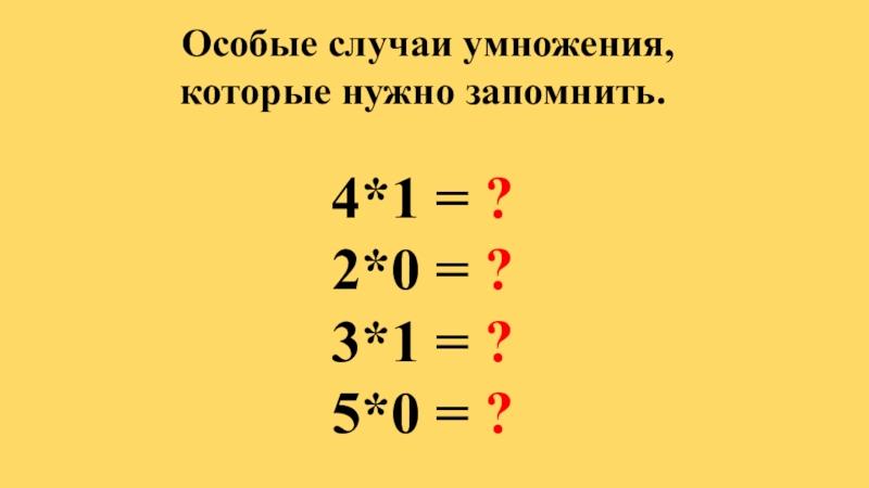 знакомство учащихся с результатом умножения числа на 1, на 0
