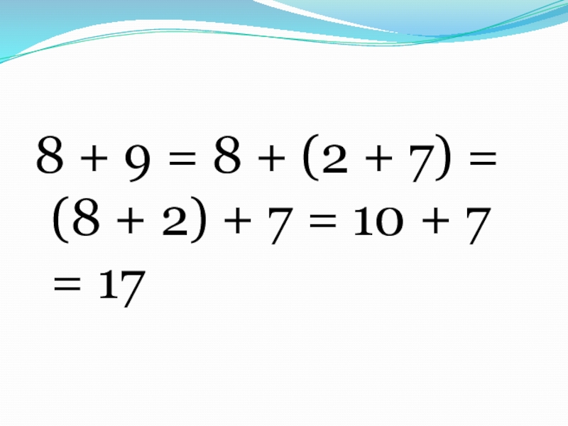 Слайд 78 + 9 = 8 + (2 + 7) = (8