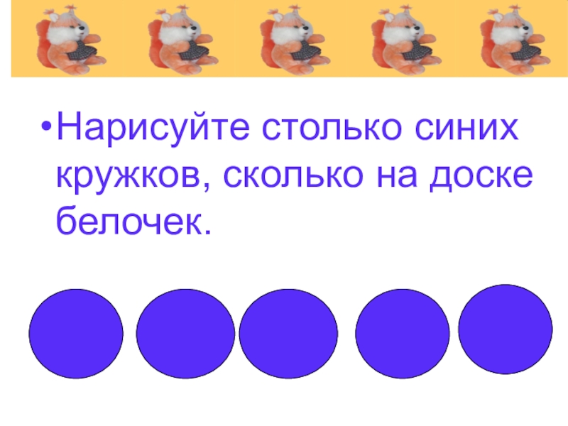 Слайд 7Нарисуйте столько синих кружков, сколько на доске белочек.