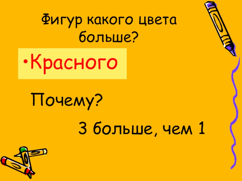 Фигур какого цвета больше?КрасногоПочему?3 больше, чем 1