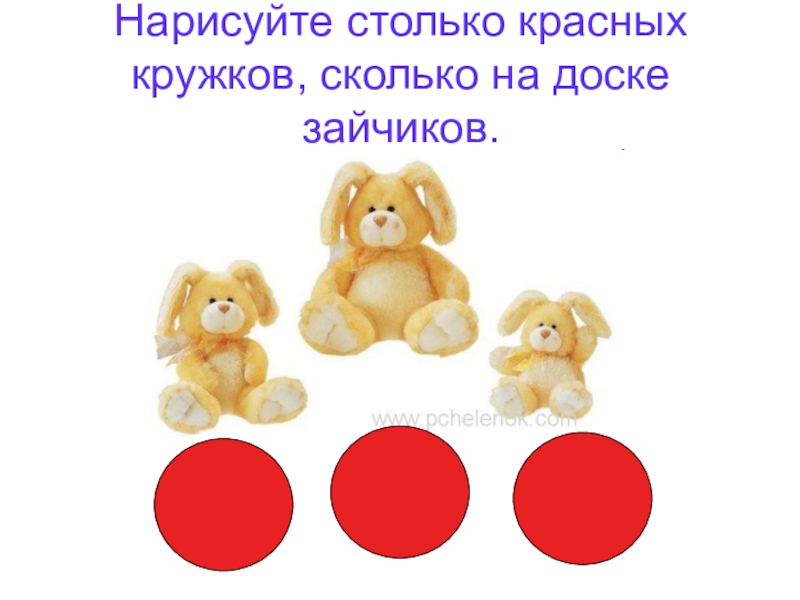 Слайд 8Нарисуйте столько красных кружков, сколько на доске зайчиков.
