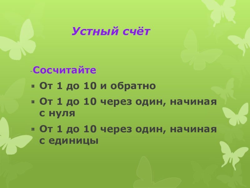 Устный счёт-Сосчитайте От 1 до 10 и обратноОт 1 до 10