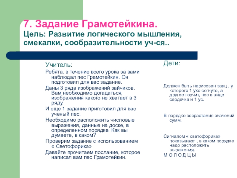 Сигналом « светофорика» показывают , в каком порядке надо расположить выражения.