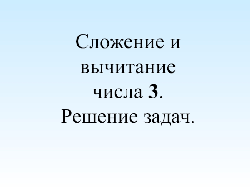Слайд 1Сложение и вычитание числа 3. Решение задач.