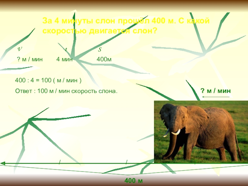 Ответ : 100 м / мин скорость слона.