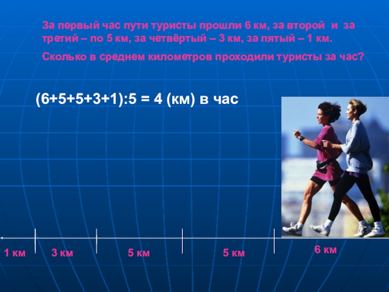 (6+5+5+3+1):5 = 4 (км) в час