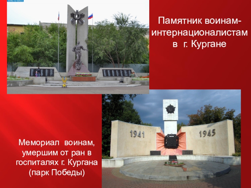 Памятник воинам-интернационалистам в г. КурганеМемориал воинам, умершим от ран в госпиталях г. Кургана (парк Победы)