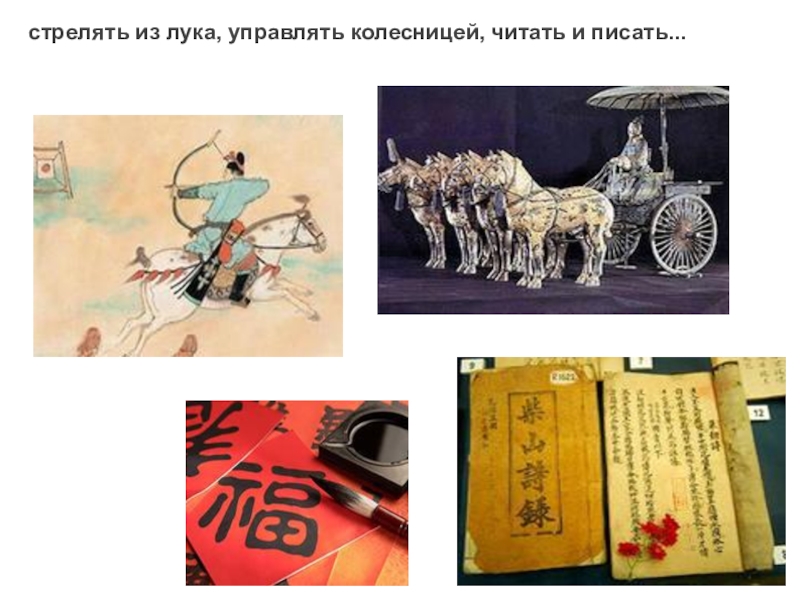 Слайд 6стрелять из лука, управлять колесницей, читать и писать...