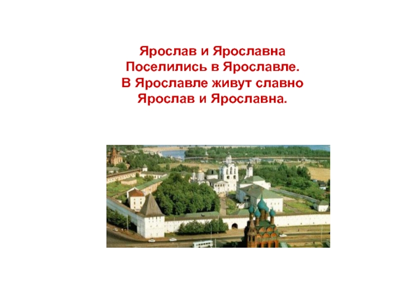 Ярослав и Ярославна Поселились в Ярославле. В Ярославле живут славно Ярослав и Ярославна.