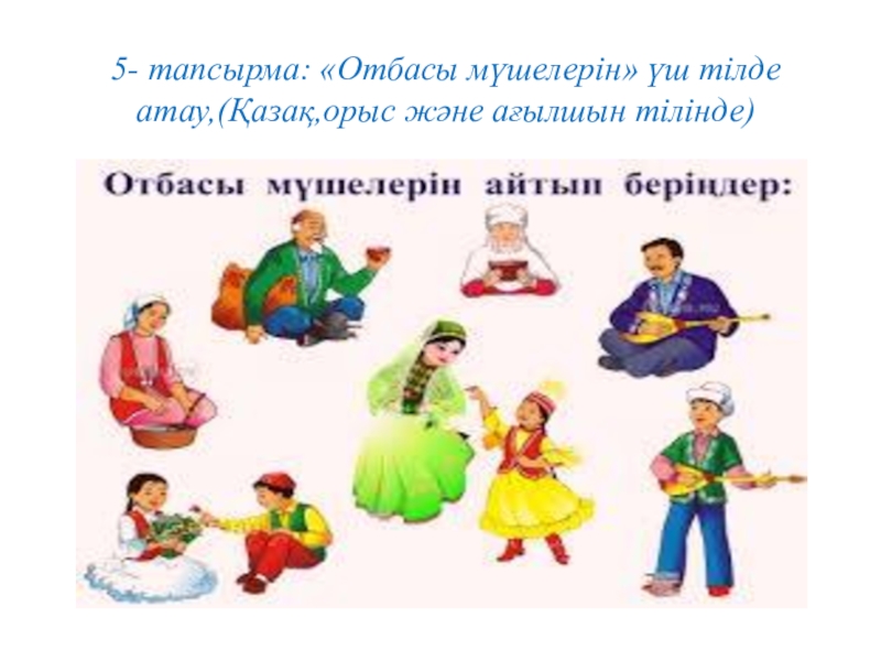 5- тапсырма: «Отбасы мүшелерін» үш тілде атау,(Қазақ,орыс және ағылшын тілінде)
