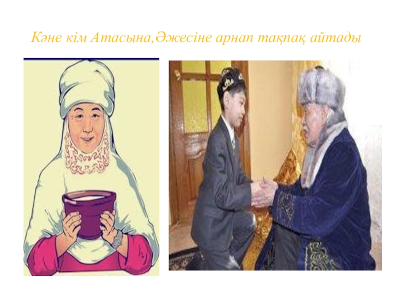 Слайд 15Кәне кім Атасына,Әжесіне арнап тақпақ айтады