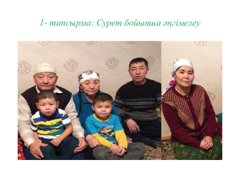 Слайд 113-тапсырма: Сурет бойынша отбасы мүшелерін атау