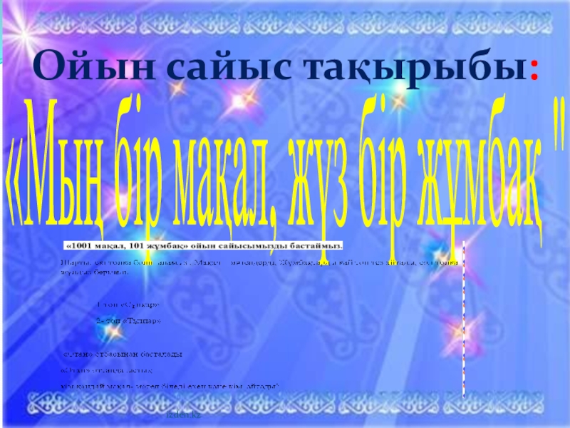 Ойын сайыс тақырыбы:izden.kz«Мың бір мақал, жүз бір жұмбақ "