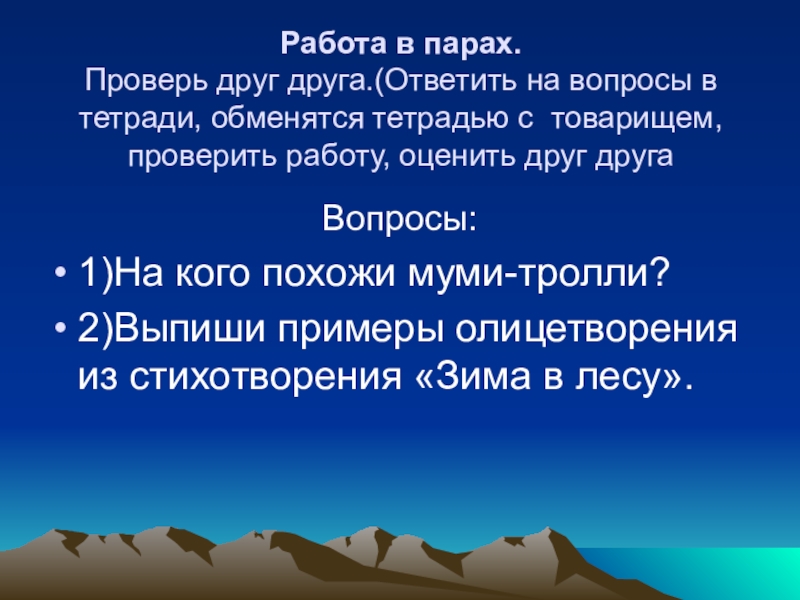 2)Выпиши примеры олицетворения из стихотворения «Зима в лесу».