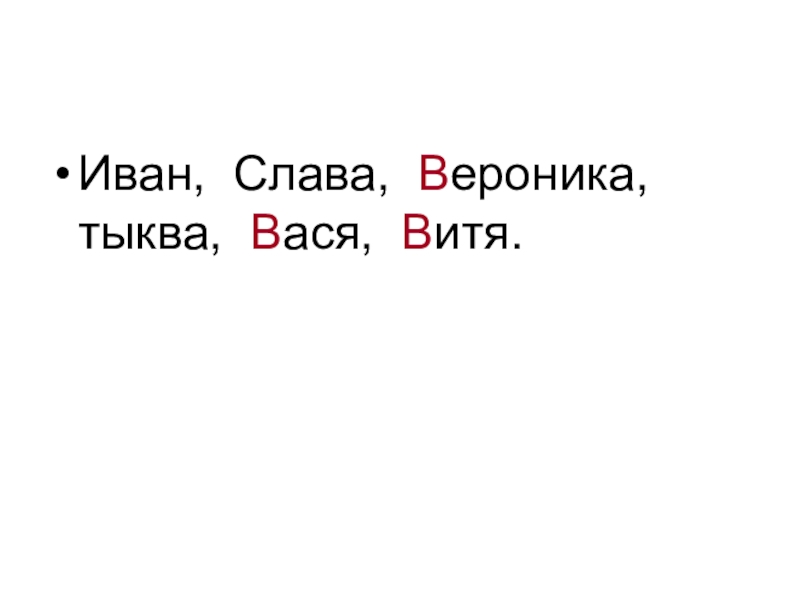 Иван, Слава, Вероника, тыква, Вася, Витя.