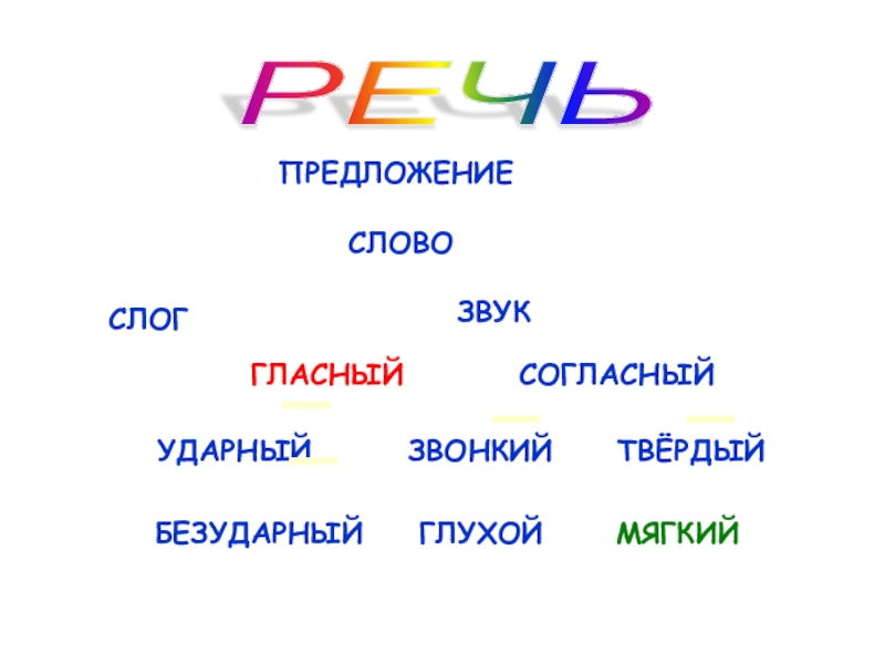 СЛОВОПРЕДЛОЖЕНИЕРЕЧЬ СЛОГЗВУКГЛАСНЫЙСОГЛАСНЫЙТВЁРДЫЙМЯГКИЙБЕЗУДАРНЫЙГЛУХОЙЗВОНКИЙУДАРНЫЙ