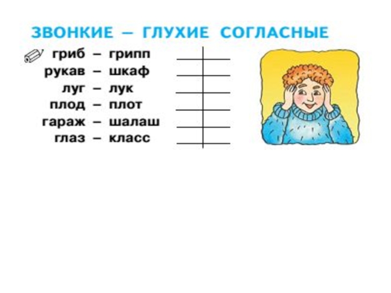 Презентация, доклад на тему Урок обучения грамоте Звонкие и глухие согласные