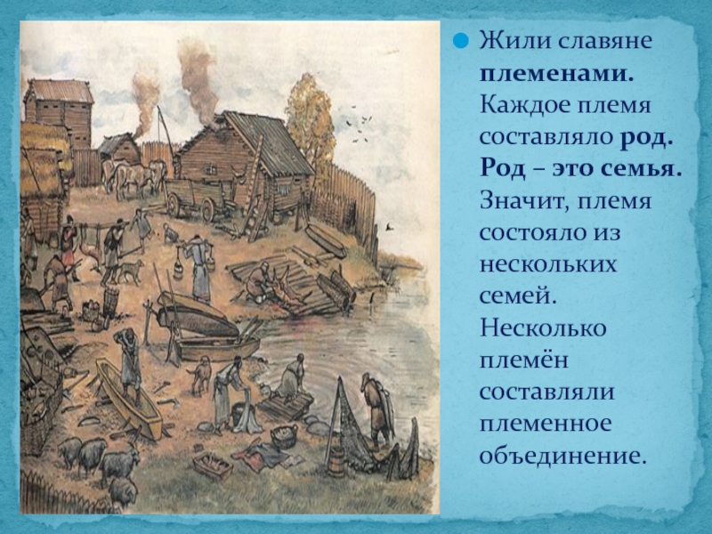 Слайд 10Жили славяне племенами. Каждое племя составляло род. Род – это семья.