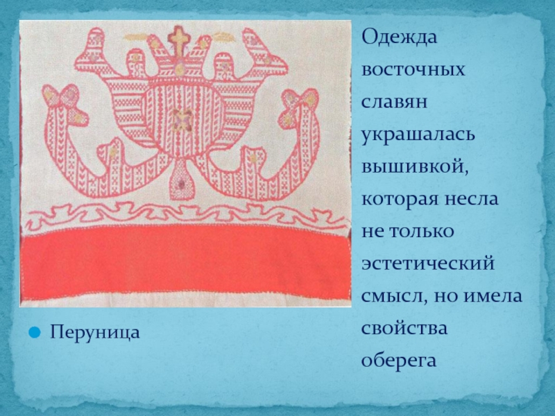 Одежда восточных славян украшалась вышивкой, которая несла не только эстетический смысл,
