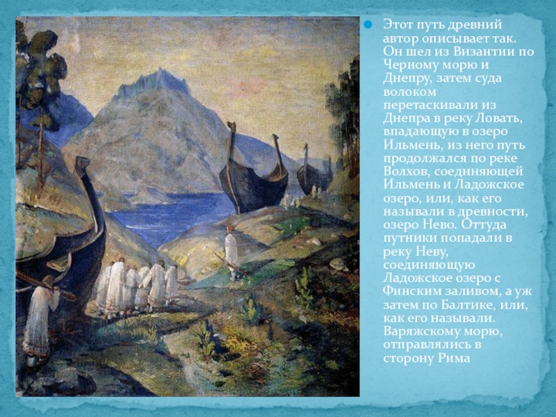 Слайд 28Этот путь древний автор описывает так. Он шел из Византии по