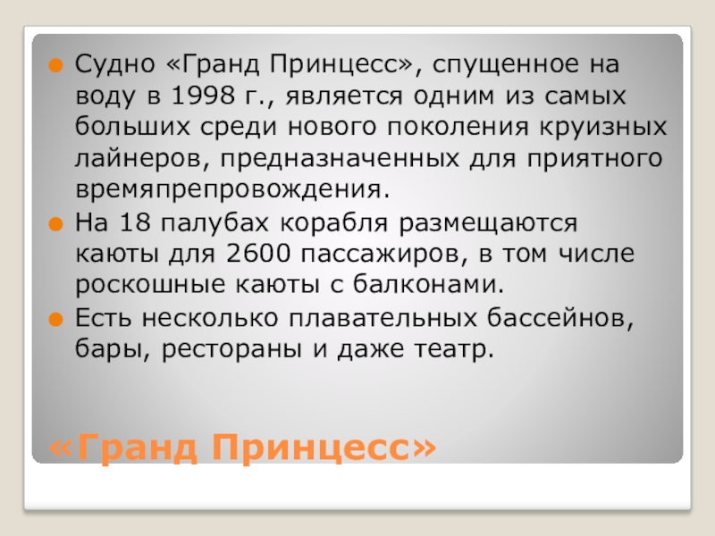 Судно «Гранд Принцесс», спущенное на воду в 1998 г., является