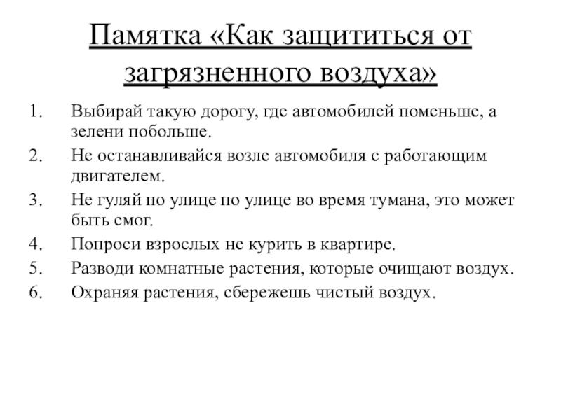 Слайд 22Памятка «Как защититься от загрязненного воздуха»