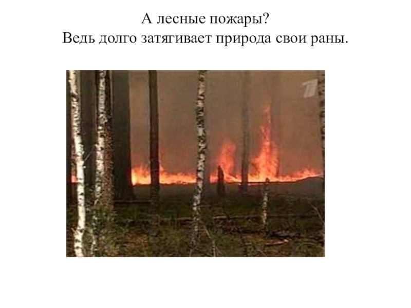 Слайд 17 А лесные пожары? Ведь долго затягивает природа свои раны.