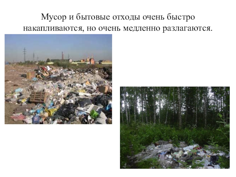Слайд 16Мусор и бытовые отходы очень быстро накапливаются, но очень медленно разлагаются.