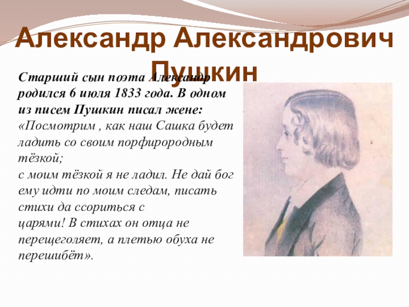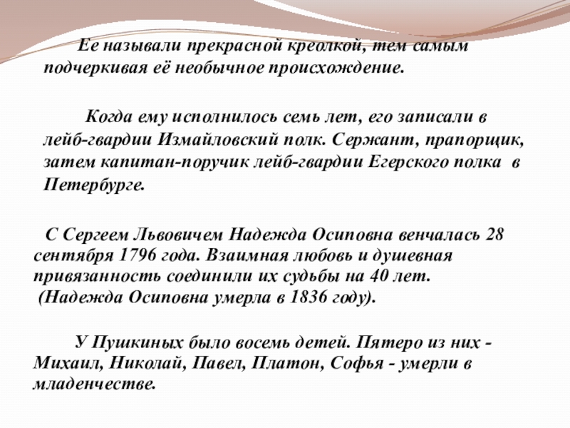 У Пушкиных было восемь детей. Пятеро из них - Михаил, Николай, Павел, Платон, Софья - умерли в младенчестве.