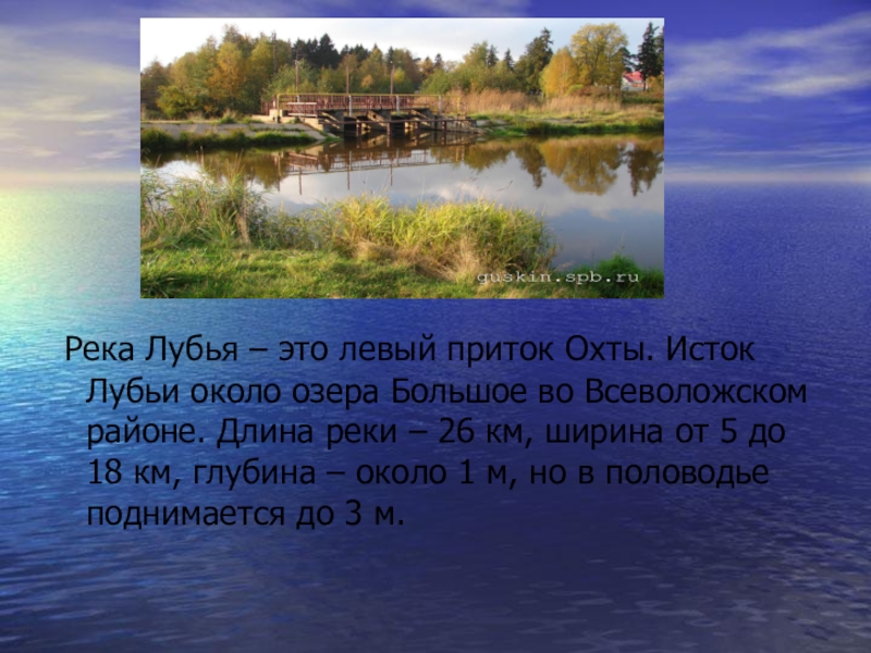 Река Лубья – это левый приток Охты. Исток Лубьи около озера Большое во Всеволожском районе. Длина