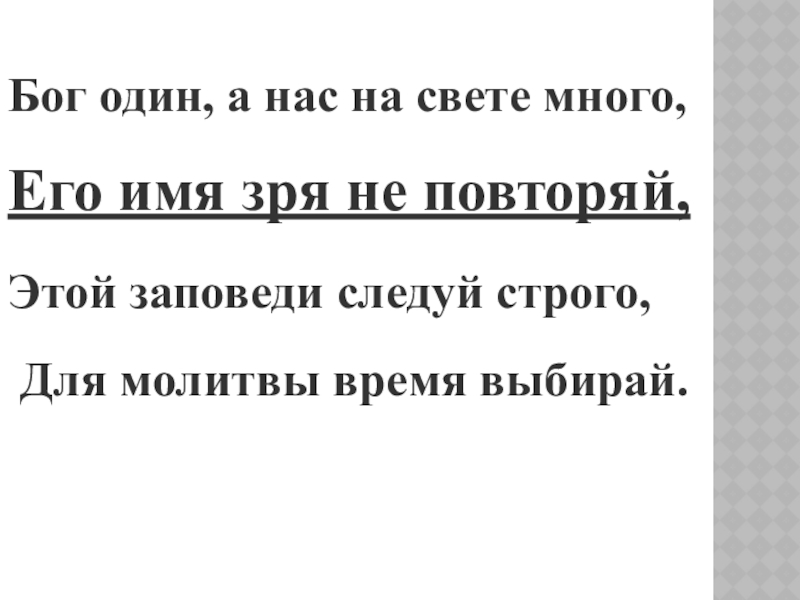 Заповедь ещё одна велит,